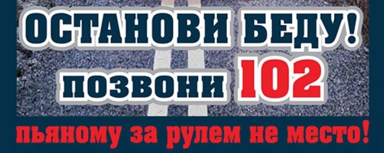 Если вы видите, что за руль садится нетрезвый водитель или по проезжей части передвигается пьяный пешеход - незамедлительно сообщите об этом по телефону 102!