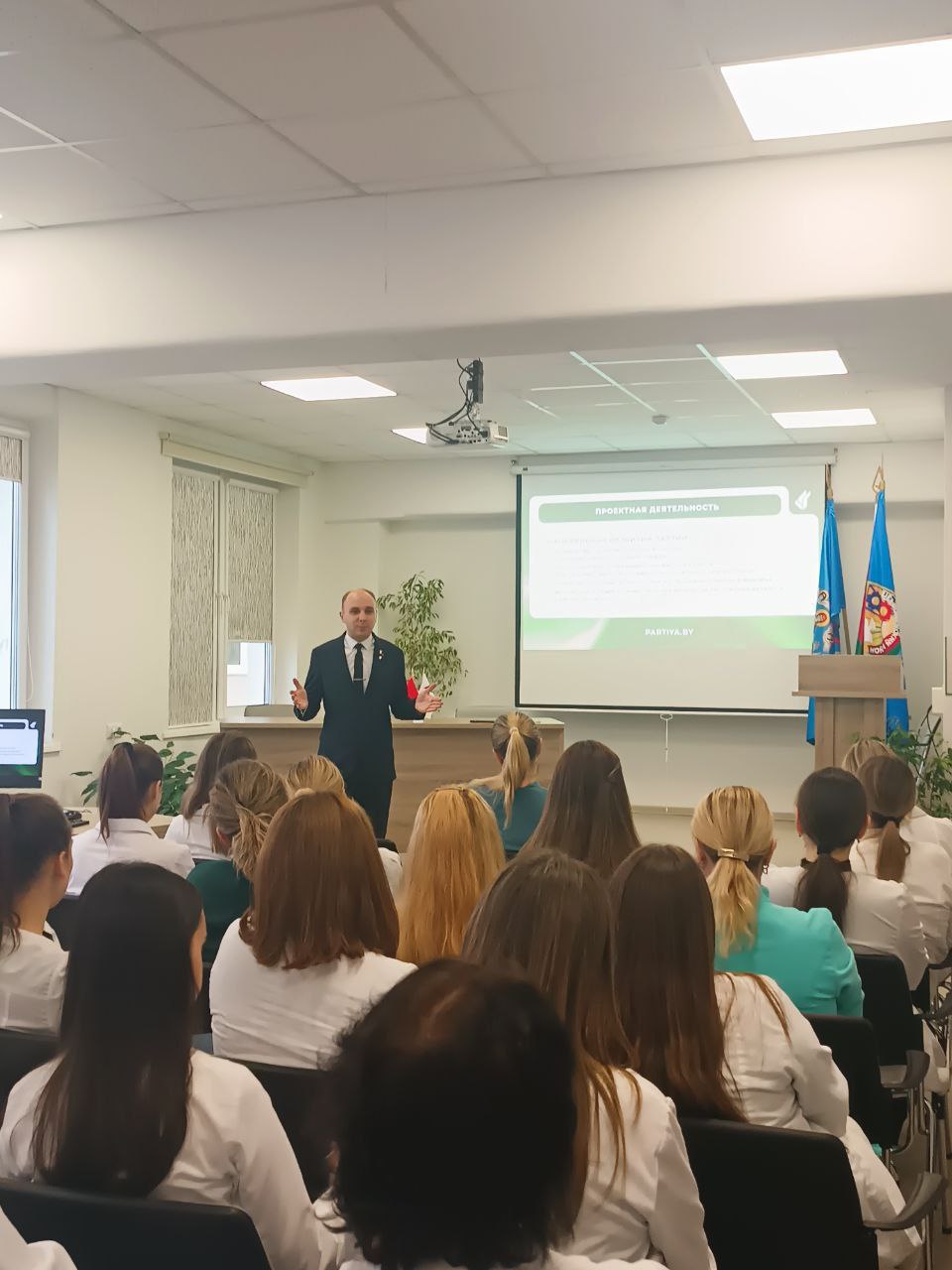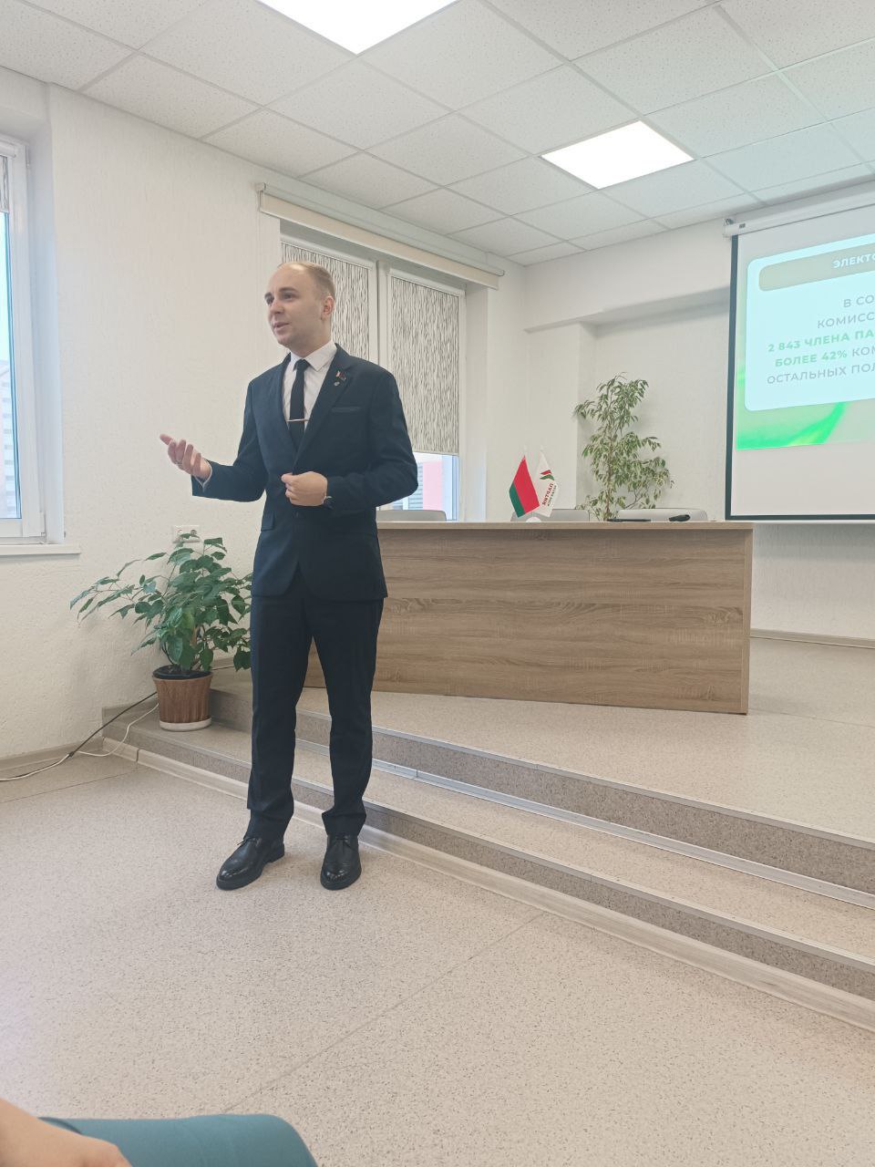 Рассказал о деятельностью партии, её целях, программе, направлениях работы. Ответил на вопросы сотрудников учреждения о порядке вступления в партию "Белая Русь".